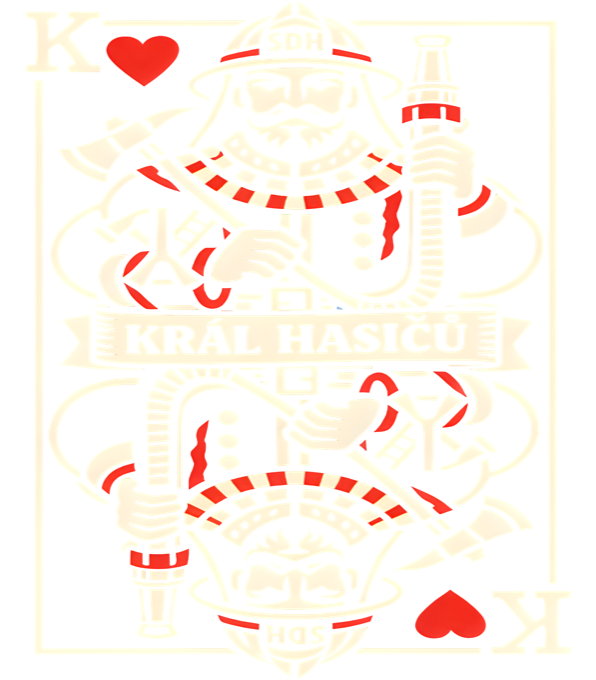 Král hasičů. Stylový motiv pro všechny hrdiny v uniformě, který kombinuje estetiku hracích karet s hasičskou tématikou. Ideální dárek pro dobrovolné i profesionální hasiče, kteří vládnou svému řemeslu.