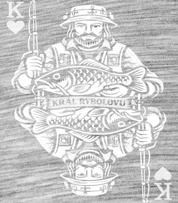 Král rybolovu, bílý potisk. Unikátní design pro vášnivé rybáře, který ztvárňuje vládce vod v podobě karetního krále s úlovkem. Skvěle se hodí pro každého, kdo tráví volné chvíle u vody a čeká na svůj životní úlovek. Tričko, tílko, mikina, kšiltovka, zástěra, hrnek, plechový hrnek, termoska, půllitr, kraťasy, polštář.