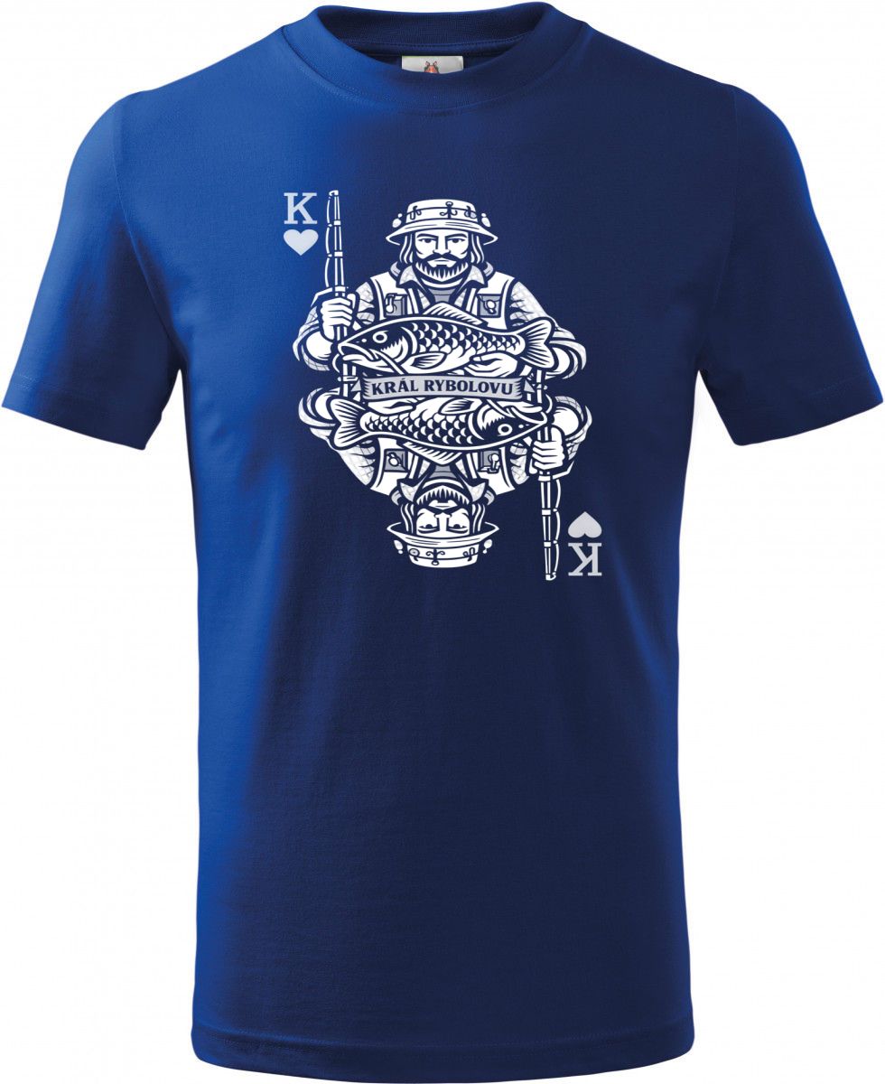 Král rybolovu, bílý potisk. Unikátní design pro vášnivé rybáře, který ztvárňuje vládce vod v podobě karetního krále s úlovkem. Skvěle se hodí pro každého, kdo tráví volné chvíle u vody a čeká na svůj životní úlovek. Tričko, tílko, mikina, kšiltovka, zástěra, hrnek, plechový hrnek, termoska, půllitr, kraťasy, polštář.