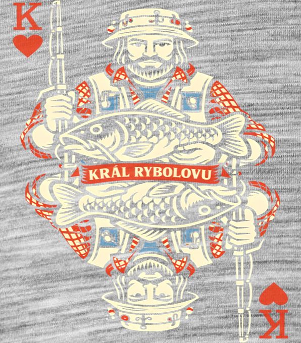 Král rybolovu. Unikátní design pro vášnivé rybáře, který ztvárňuje vládce vod v podobě karetního krále s úlovkem. Skvěle se hodí pro každého, kdo tráví volné chvíle u vody a čeká na svůj životní úlovek. Tričko, mikina, kšiltovka, zástěra, tílko, hrnek, půllitr, plechový hrneček