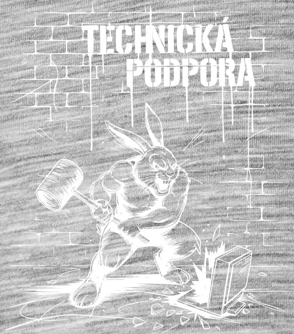Králík technické podpory, V2, bílý tisk. Když selže restart a “zkusit to vypnout a zapnout” už nepomáhá, povolává se náš IT hrdina s kladivem!