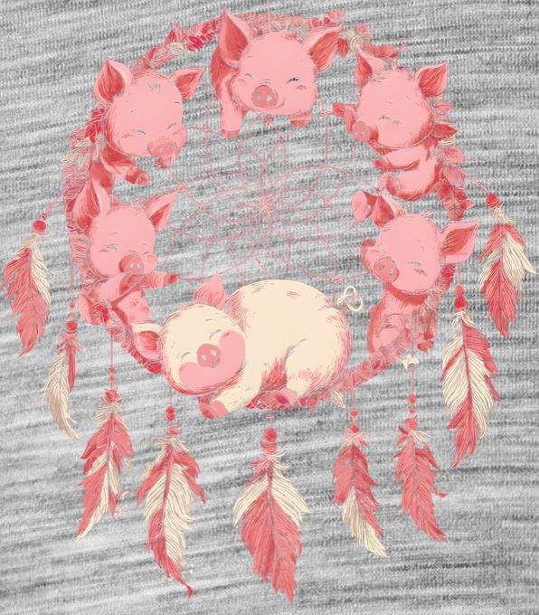 Lapač snů, prasátko. Tento lapač snů funguje na principu “co si do rána nasníš, to si k obědu sníš” – ale neboj, tady se chytají jen ty nejrůžovější a nejveselejší sny o bahně a kopě dobrot! Tričko, tílko, mikina, kšiltovka, zástěra, hrnek, plechový hrnek, termoska, půllitr, kraťasy, polštář.