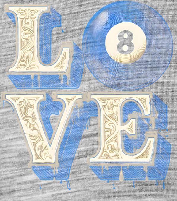 Láska ke kulečníku, V2. Černá osmička v drsném „grunge“ stylu pro ty, co hrají srdcem. Design, který jasně ukazuje, že váš tlukot srdce se řídí rytmem narážejících koulí na zeleném suknu. Tričko, mikina, kšiltovka, zástěra, tílko, hrnek, půllitr, plechový hrneček.