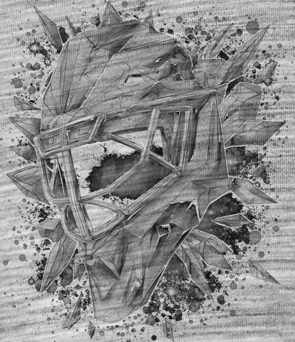 Ledová brankářská maska, černý potisk. Tvrdý jako led a připravený zastavit každou střelu. Propracovaný a agresivní motiv hokejové brankářské masky, která je tvořená ze zářivých modrých krystalů a roztříštěného ledu. Dokonalý chladný design pro všechny hokejové brankáře, hráče i zaryté fanoušky, kterým bije srdce pro zimní stadion.