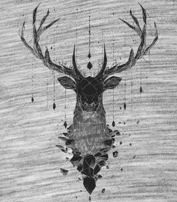 Ledový jelen, černý potisk. Tento majestátní krystalický jelen rozzáří váš den a ukáže, že i chladná elegance dokáže mít jiskru.