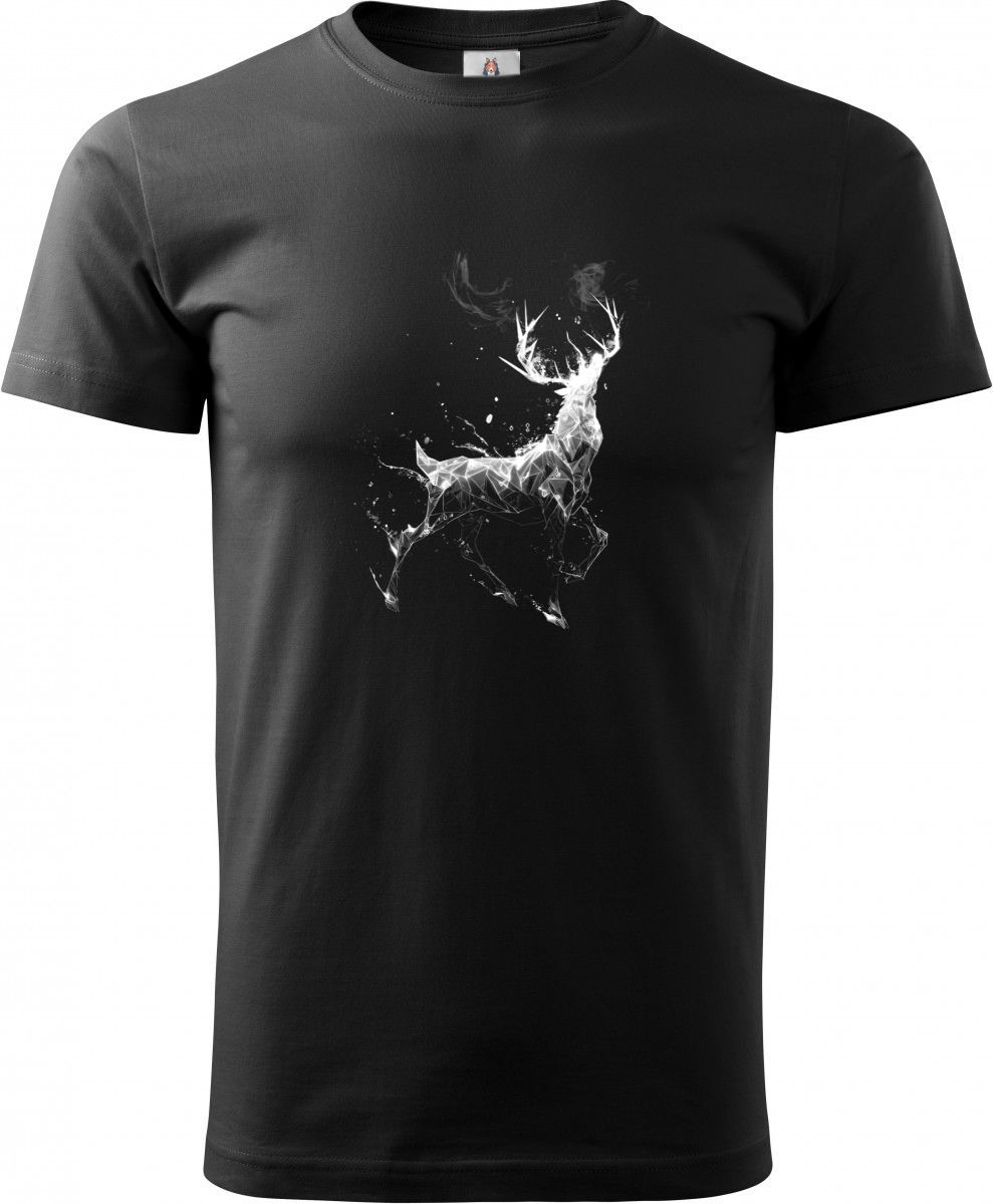 Ledový jelen, V2, bílý potisk. Tento majestátní krystalický jelen rozzáří váš den a ukáže, že i chladná elegance dokáže mít jiskru.