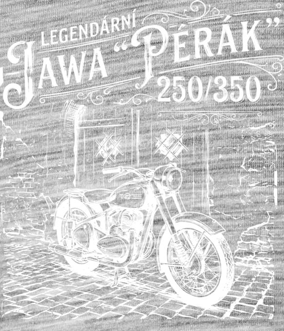 Legendární JAWA 250/350 “Pérák”, v26-1. Tričko, mikina, kšiltovka, zástěra, tílko, hrnek, půllitr, plechový hrneček.