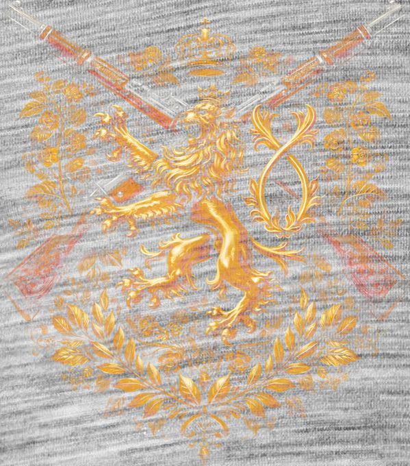 Lev a pušky. Majestátní a drsný motiv, který v sobě nese symboliku síly a tradice. Detailně propracovaný lev s korunou v doprovodu dvou zkřížených historických pušek, obklopený bohatým ornamentem. Design, který působí luxusně a nekompromisně zároveň. Skvělá volba pro milovníky zbraní, historie nebo pro ty, co chtějí nosit krále zvířat v unikátním a propracovaném stylu.