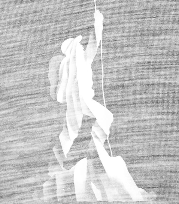 Lezec v oblacích , bílý potisk. Když se vášeň pro hory a lezení spojí s dynamickou abstrakcí! Tento motiv zachycuje horolezce v akci, stylizovaného do tekutých, energických forem. Je to oslava odvahy, síly a výzvy vertikálního světa..