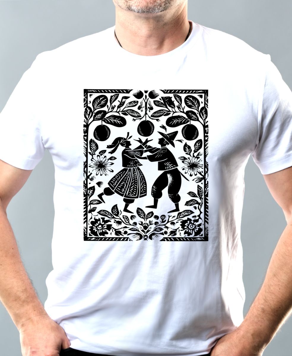 Lidový tanec, folklor, černý tisk. Oslava tradic, které mají rytmus v srdci a eleganci v každém kroku. Pro všechny, kteří milují folklorní ornamenty a nenechají žádnou muziku jen tak v klidu sedět. Tričko, tílko, mikina, kšiltovka, zástěra, hrnek, hrneček, půllitr, plechový hrnek