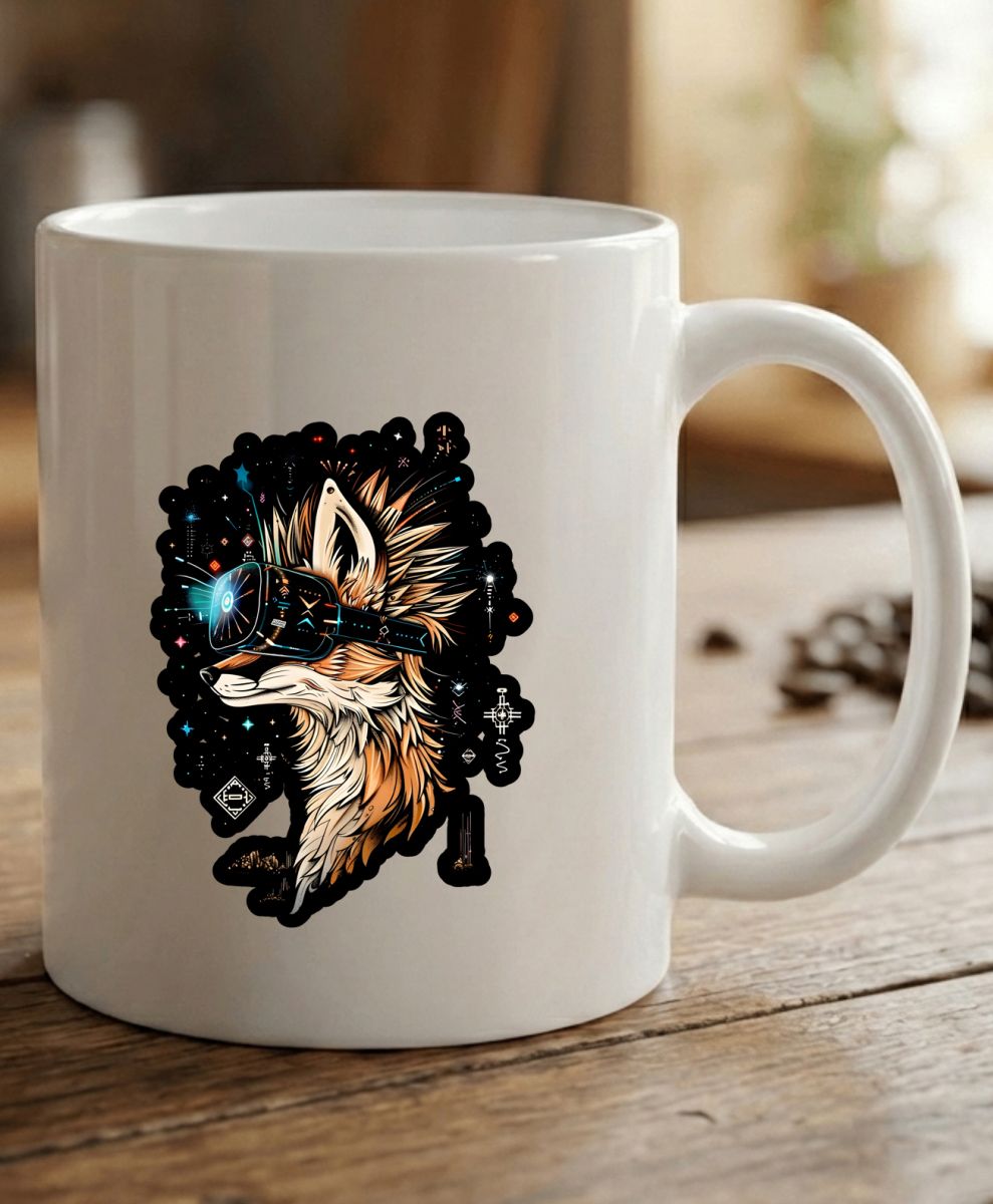 Liška ve VR. Tajemný a stylový kousek pro všechny milovníky zvířat, her a sci-fi. Tričko, tílko, mikina, kšiltovka, zástěra, hrnek, plechový hrnek, termoska, půllitr, kraťasy, polštář