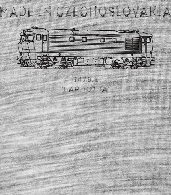 Lokomotiva řady 749/751 “Bardotka”, V4. Tričko, mikina, kšiltovka, zástěra, tílko, hrnek, půllitr, plechový hrnek