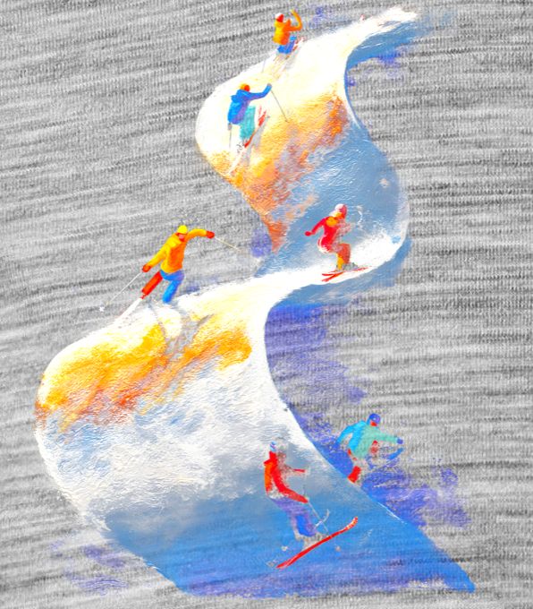 Lyžařská vlna. Lyžaři se řítí po sněhové vlně v zářivých barvách. Skvělé tričko pro každého, kdo miluje hory, sníh a zimní sporty – zkrátka pro ty, co žijí zimou!
