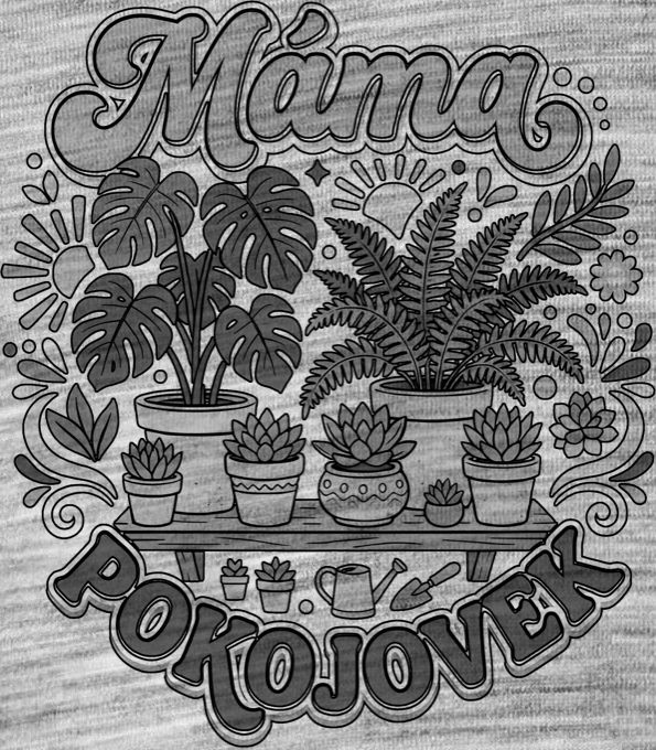 Máma pokojovek, černý tisk. Stylový retro kousek pro každou hrdou pěstitelku, která mění svůj domov v zelenou džungli. Ideální dárek pro všechny kytkomilky, vášnivé zahradnice a milovnice útulného domova. Tričko, mikina, kšiltovka, zástěra, tílko, hrnek, půllitr, plechový hrneček
