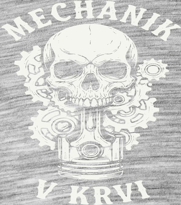 Mechanik v krvi, V2, bílý tisk. Když vám místo krve koluje v žilách vysokooktanový benzín a vaše srdce bije v rytmu osmiválce. Tenhle drsný motiv s pístem přímo v hlavě je povinnou výbavou pro každého, kdo tráví v garáži víc času než v obýváku. Tričko, mikina, kšiltovka, zástěra, tílko.