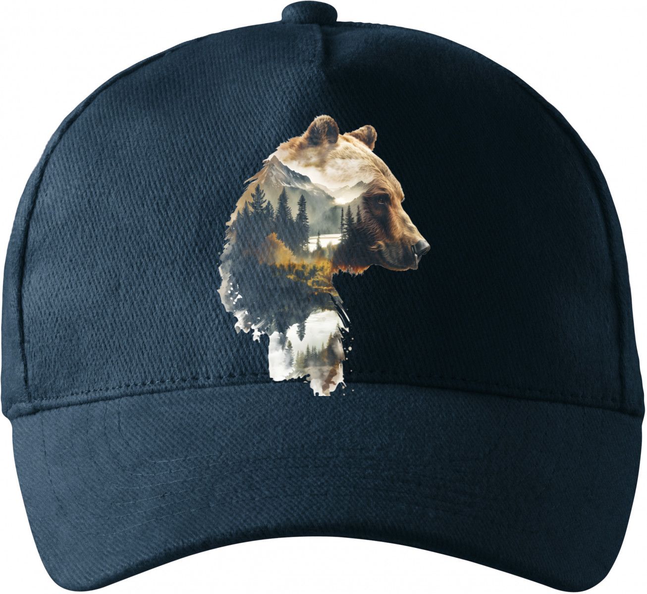 Medvěd v horách, V2.Tento design s dvojexpozicí elegantně kombinuje portrét medvěda s dechberoucí horskou krajinou