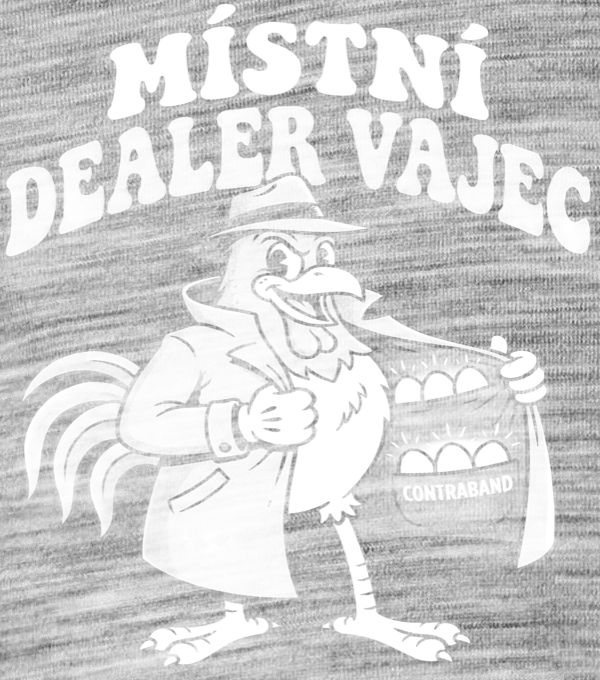 Místní dealer vajec, V1, bílý tisk. Sháníte kvalitní matroš na nedělní bábovku? Tenhle opeřený mafián v baloňáku má vždycky plné kapsy toho nejlepšího z domácího chovu. Zábavný kousek pro každého chovatele s citem pro nadsázku a černý trh. Tričko, mikina, kšiltovka, zástěra, tílko.