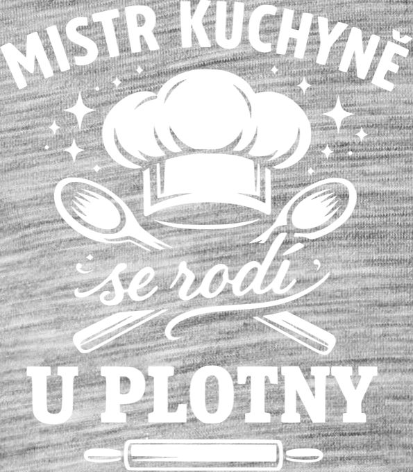Mistr kuchyně, bílý tisk. Stylový design pro krále či královnu domácí kuchyně, kteří u plotny doslova čarují. Skvělý dárek pro nadšené kuchaře, pekaře a všechny, kdo vědí, že to pravé umění vzniká s vařečkou v ruce.