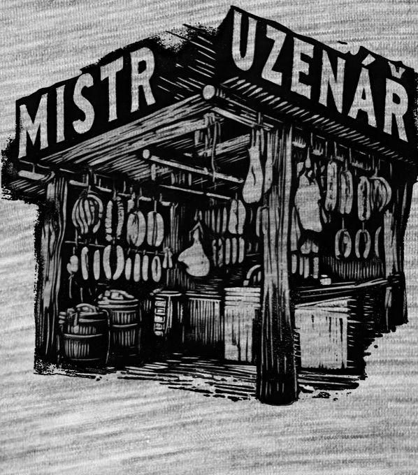 Mistr uzenář, černý tisk. Poctivý kousek pro každého, kdo ví, jak správně naložit a vyudit pořádnou porci masa. Dokonalý a pohodlný dárek pro tátu, dědu nebo zkrátka kohokoliv, jehož revírem je vůně dřeva a kvalitních uzenin.