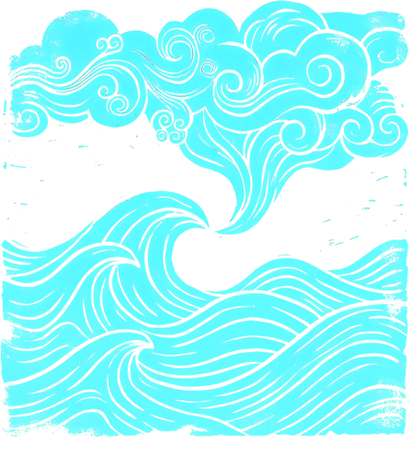 Mořské vlny. Dynamický design inspirovaný tradičním japonským uměním. Azurově modré vlny a stylizovaná mračna vytvářejí silný vizuální prvek, který připomíná nespoutanou sílu oceánu. Čistý, grafický styl s jemnou texturou skvěle vynikne na černém i barevném textilu. Ideální kousek pro milovníky moře, surfování nebo orientálního designu.