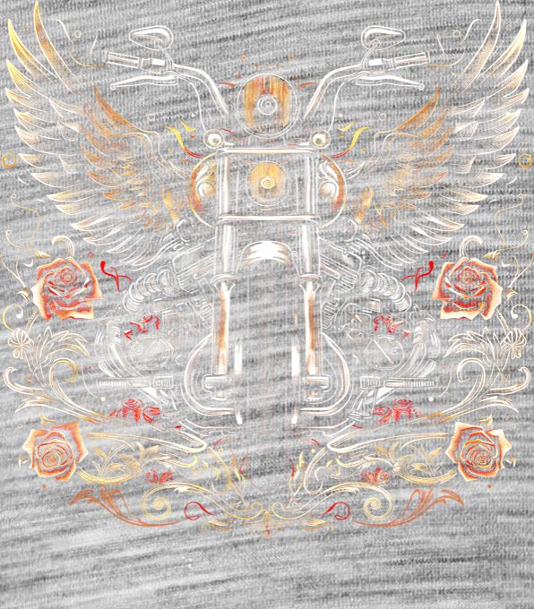 Motorkářská svoboda. Motorka, křídla a růže – esence volnosti, síly a drsné elegance. Tyhle železné oře nás vozí po dálnici života s větrem ve vlasech a srdcem plným benzínu. Létající ocel pro pravé rebely s romantickou duší.