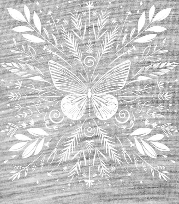 Motýlí mandala, bílý potisk. Motýl uprostřed květnaté mandaly je exploze barev, která rozzáří i ten nejšedivější den. Připravte se na vizuální zen, který má pořádné grády.