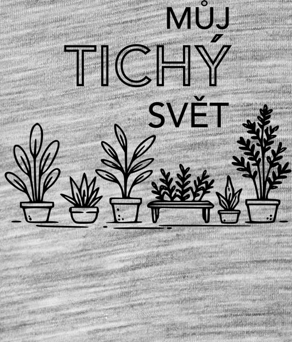 Můj tichý svět, černý tisk. Pro všechny, kteří vědí, že nejlepší společnost je ta, co jen tiše roste v květináči. Tohle tričko je oficiální uniformou pro klidné chvíle v džungli vašeho obýváku.
