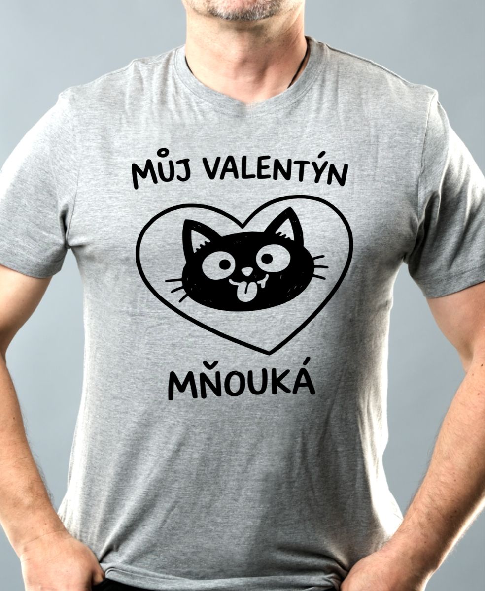 Můj Valentýn mňouká, černý potisk. Ideální valentýnský motiv pro všechny, jejichž největší láska má čtyři tlapky a neustále mňouká. Ukažte celému světu, kdo je váš skutečný Valentýn, v tomto roztomilém a hravém tričku.