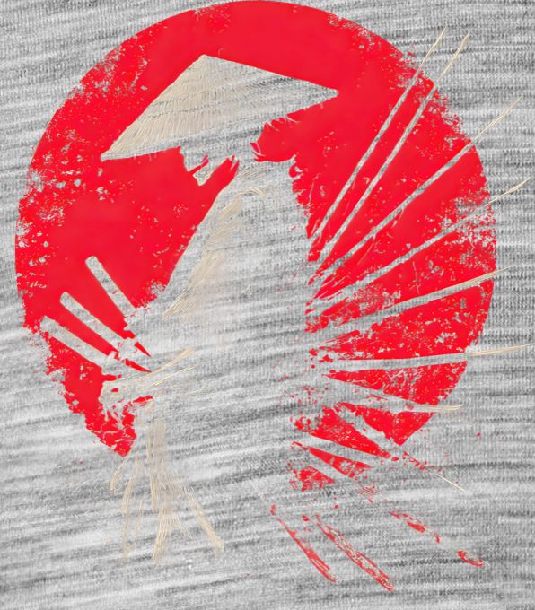 Nemrtvý Ronin. Bojovník, který se nevzdává ani po smrti. Detailní a temný design kostlivého samuraje s mnoha meči na zádech před krvavě rudým sluncem je poctou japonské mytologii a nezlomnému duchu Bušidó.