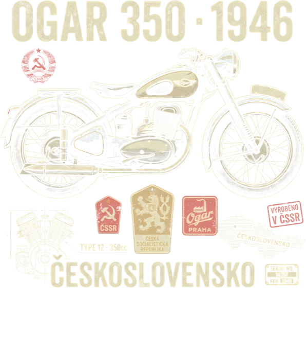 Ogar 350 1946. Tričko, mikina, kšiltovka, zástěra, tílko, hrnek, půllitr, plechový hrneček