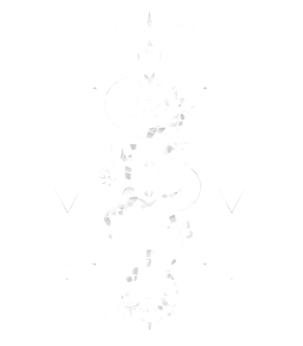 Orientální had, bílý potisk. Královský, zelený had stočený do majestátní spirály, obklopený zářivou geometrií štěstí a moudrosti. Mytické zvíře v designu inspirovaném Asií.