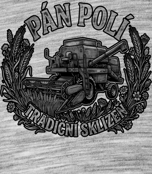Pán polí tradiční sklizeň, černý potisk. Pro ty, kteří znají svá pole jako vlastní boty. Vintage design s detailně vykresleným kombajnem v akci, doplněný o rustikální věnec z polních plodin a nápis „Pán polí – tradiční sklizeň“. Tento kousek dýchá poctivou prací a tradicí. Ideální tričko pro hrdé farmáře, agronomy a všechny nadšence do těžké zemědělské techniky.