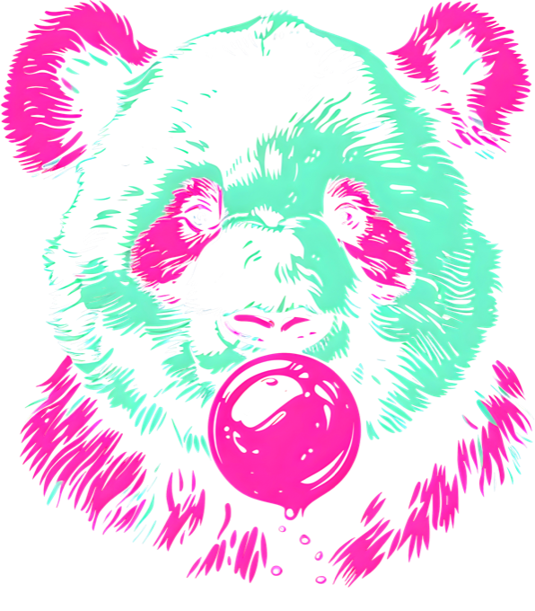 Panda s bublinou. Kdo řekl, že pandy nemůžou být divoké a růžové? Tahle má svůj styl a žvýkačku a kašle na to, co si o ní myslí ochranáři! Absolutní chill.