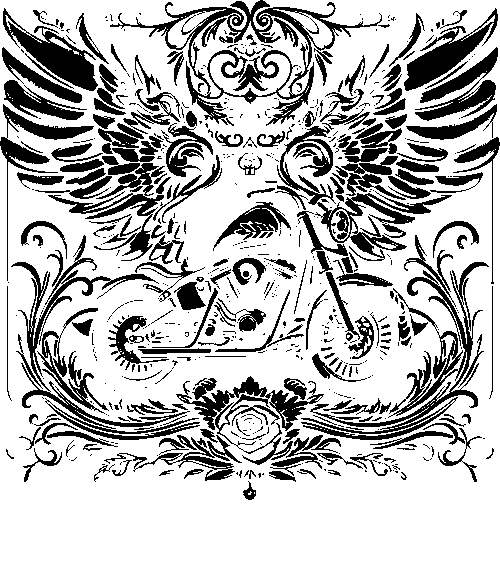 Pekelná jízda anděla, černý tisk. Když se anděl nudí v nebi, osedlá si pekelný stroj a vyrazí na spanilou jízdu. Klasická motorkářská ikona s křídly, lebkou a temnou romantikou. Ideální pro ty, co mají rádi asfalt, volnost a rock’n’roll.
