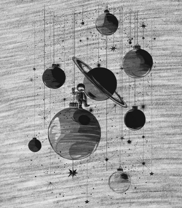 Planetární Vánoce, černý tisk. Užijte si Vánoce ve stylu!