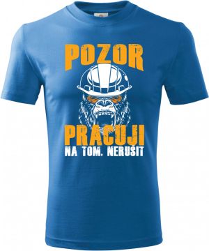 Trička s potiskem motivů Pozor, pracuji na tom!  Vtipné trika pro kamarády. Ideální dárek pro tatínka, dědečka…