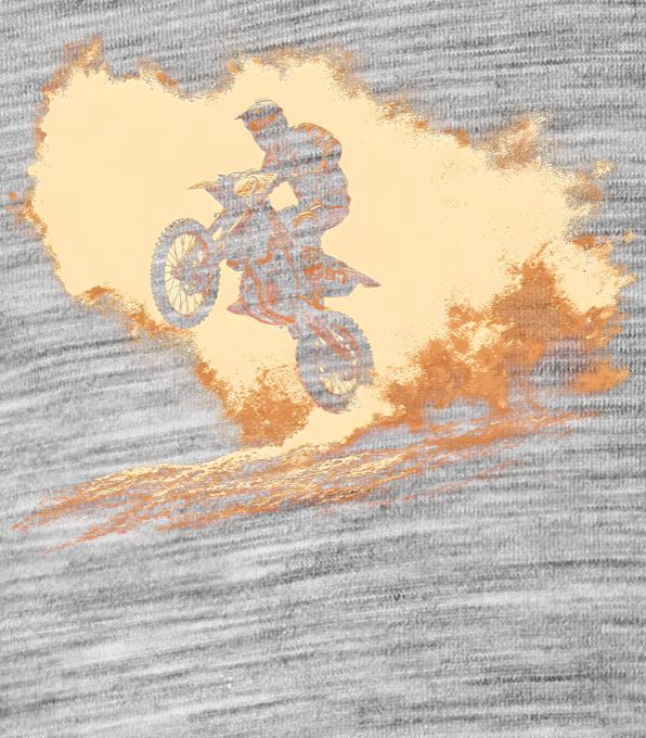 Prach a rychlost, V2, černý tisk. Když se motorka ponoří do hlíny a prach tančí v oblouku, to je ta pravá endurovou poezie!