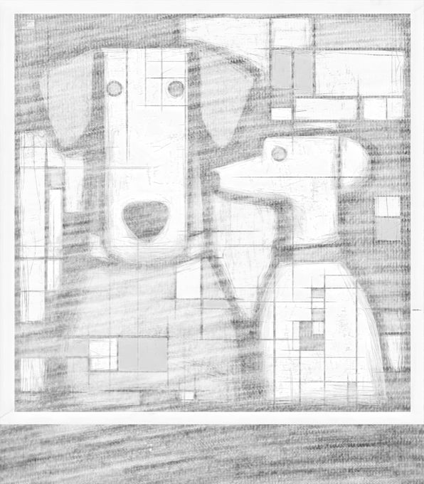 Psi v kubistickém stylu, bílý potisk. Umění na scéně! Hravý, barevný a vysoce stylový design pro milovníky psů a moderního umění.