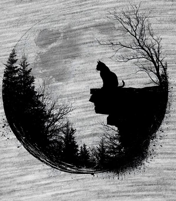Půlnoční hlídka, kočka, černý potisk. Majestátní klid a ostrý zrak, kterému ve tmě nic neunikne. Design pro milovníky koček, kteří chápou, že noc patří těm, co našlapují potichu a vidí krásu tam, kde ostatní jen tmu.