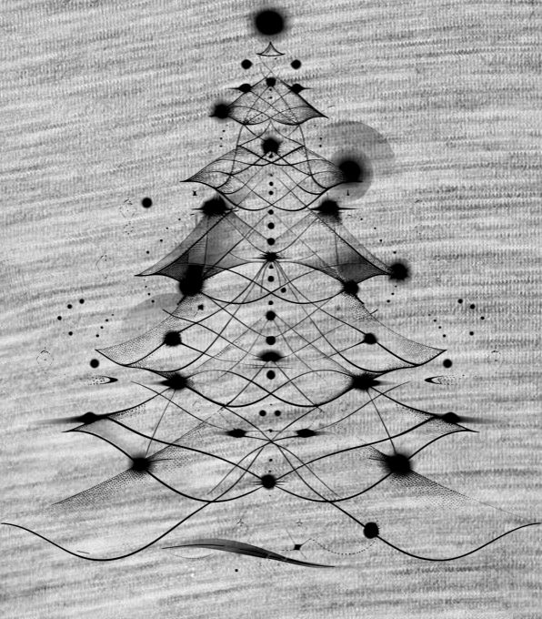 Cyber Vánoce, černý tisk. Když se Vánoce potkají s kyberprostorem! Moderní, abstraktní stromek, který rozsvítí každou párty.