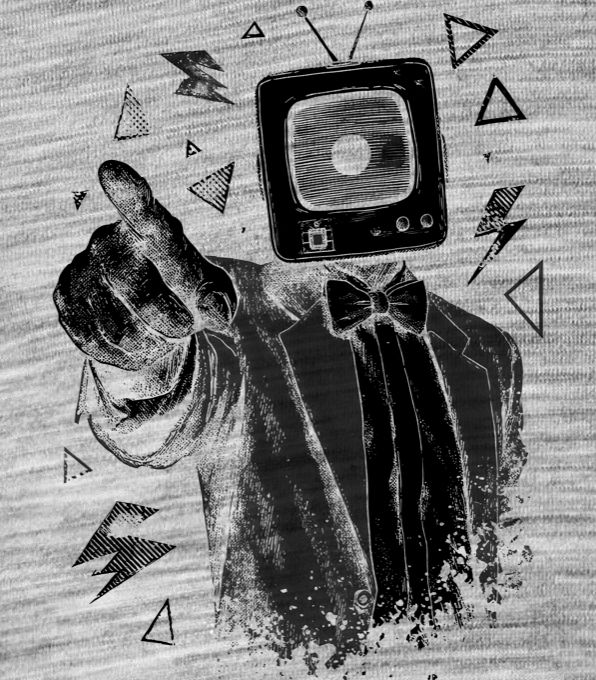 Retro TV man, černý tisk. Tento frajer vám ukáže, že být retro futuristický je stále cool. Zmáčkněte “play” na svůj den a ignorujte nudu.