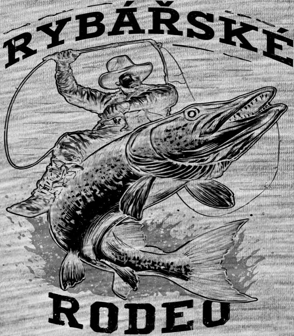 Rybářské rodeo, štika, černý potisk. Krocení dravé štiky vyžaduje pevné nervy a pořádný stisk v sedle. Motiv pro ty, kteří se nebojí postavit vodním bestiím a užívají si každou vteřinu souboje na hladině. Tričko, mikina, kšiltovka, zástěra, tílko, hrnek, půllitr, plechový hrneček.