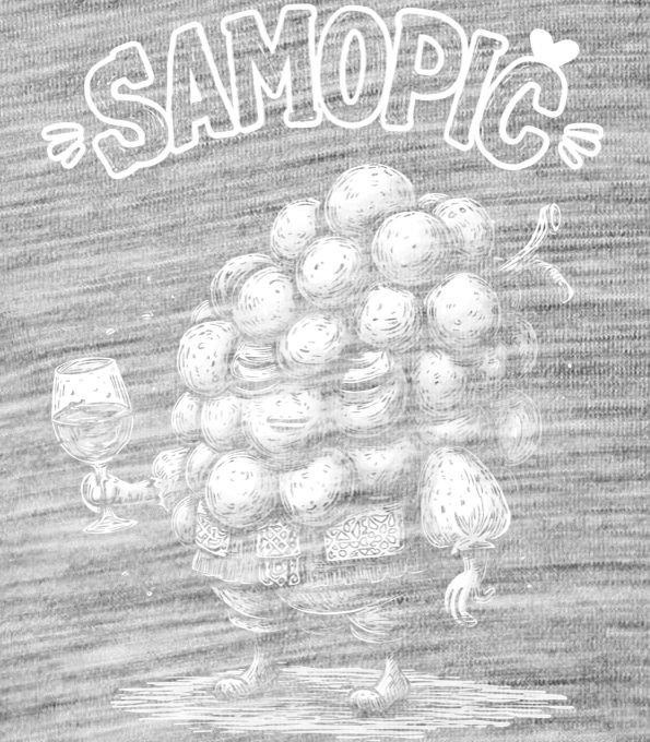 Samopič, bílý tisk. Tohle je vtip pro všechny, kteří ví, že nejlepší víno si člověk vypije sám ať už je to u sudu, nebo u televize. Život je krátký, tak si ho prostě vypič!