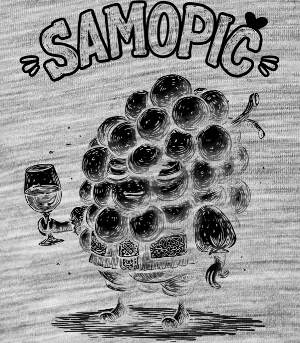 Samopič, černý tisk. Tohle je vtip pro všechny, kteří ví, že nejlepší víno si člověk vypije sám ať už je to u sudu, nebo u televize. Život je krátký, tak si ho prostě vypič!