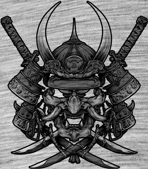 Samurajská maska Oni, černý tisk. Temná síla japonské tradice přímo na tvém tričku. Detailní motiv masky Oni v samurajské zbroji symbolizuje ochranu, sílu a neústupnost bojovníka. Precizní linky a dynamické stínování dělají z tohoto designu kousek, který ocení fanoušci východní kultury, bojových umění i precizního grafického artu.