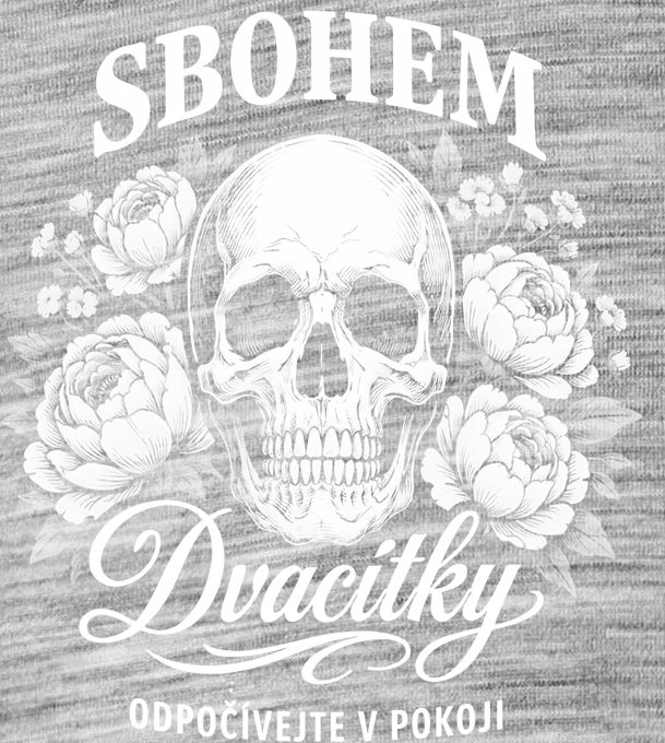 Sbohem dvacítky, bílý tisk. Stylový a vtipný způsob, jak dát sbohem mládí a přivítat třicítku s nadhledem. Tento motiv s lebkou a pivoňkami v tattoo stylu je ideálním dárkem pro každou čerstvou třicátnici, která miluje černý humor a krásný design.