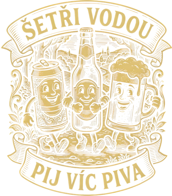 Šetři vodou, pij víc piva. Klasické české životní moudro v parádním retro kabátu. Vtipná vintage ilustrace vysmáté plechovky, lahve a oroseného půllitru, kteří si to společně ruku v ruce kráčí na jedno točené. Úderný nápis „Šetři vodou, pij víc piva“ z tohoto trika dělá naprostou nutnost pro každého správného pivaře. Ideální volba do hospody, na letní grilovačky, festivaly nebo jako sázka na jistotu při výběru dárku pro kámoše.