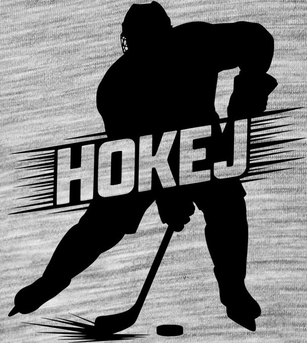 Shadow hokej, černý potisk. Dynamická silueta zachycuje sílu a koncentraci těsně před returnem