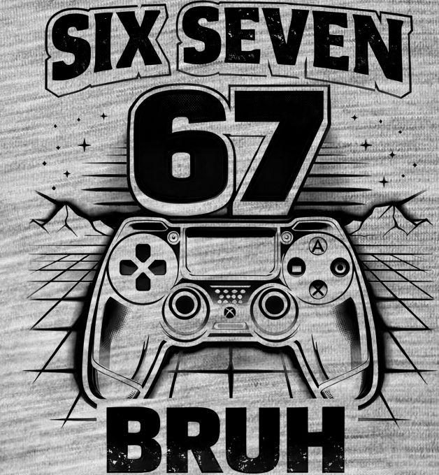 Six seven bruh gaming, V2, černý tisk. Stylový retro motiv pro všechny gamery, kteří milují estetiku 80. let a neonové barvy v modrofialových odstínech. Ideální kousek pro oslavu narozenin nebo pro milovníky vtipného herního slangu.