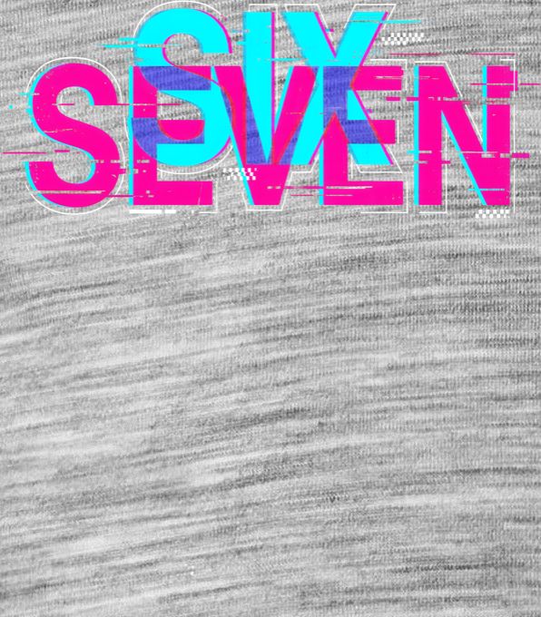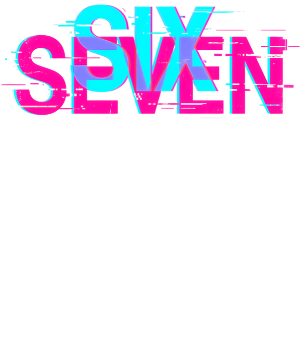 Six seven glitch. Anglická varianta motivu 67 pro fanoušky světového designu. Nápis „SIX SEVEN“ s výrazným glitch efektem a digitálním šumem v dravé kombinaci neonově modré a růžové. Čistý, typografický design, který skvěle vynikne na černém textilu. Pro všechny, co chtějí reprezentovat svůj režim v moderním cyber-punku.
